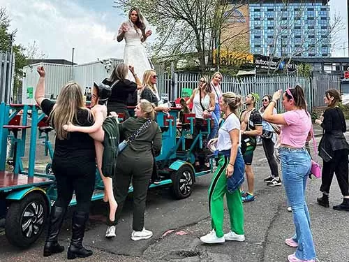Grab the gang, pop that prosecco, and get pedalling! Our prosecco bike is a top pick for hen parties, birthdays or just a good old fashioned group get together. With a sober driver at the wheel, you’ll cruise through your chosen UK or European city with drinks flowing, tunes playing, and heads turning.